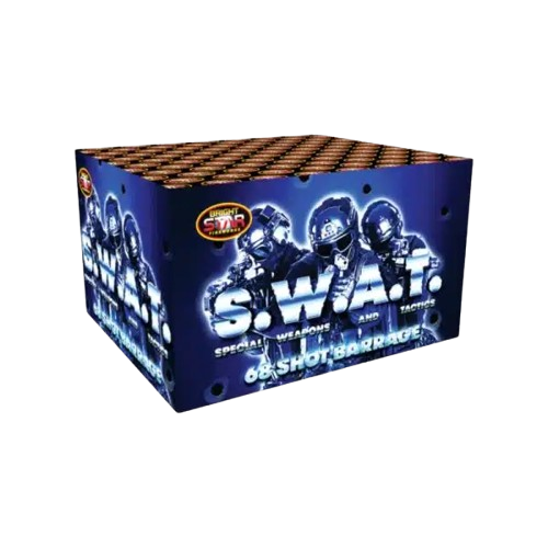 10 shot orange, indigo, blue stars with a white glitter chrysanthemum